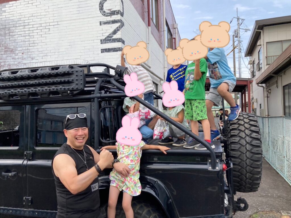 社長の車に大集合!元気いっぱいの子どもたちは軽快に登り、まるでジャングルジムのように楽しんでいました(^^)