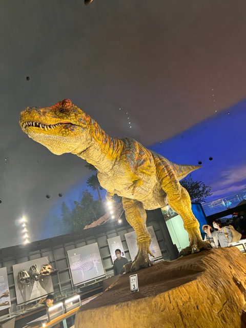 ティラノサウルスの模型は鳴き声付きで動いてました。