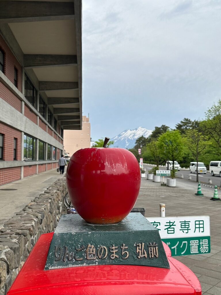 工事現場の立ち入り禁止サインにも、橋の欄干、町中が🍎づくし。